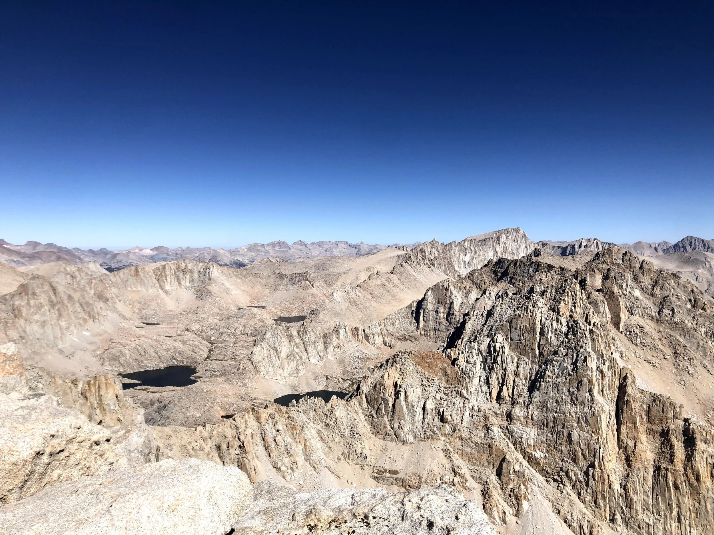 The “standard” route follows the Class 3 West Face, approached from Shepherd Pass. From our camp, we had to traverse the Williamson Bowl—a huge high-alpine basin filled with talus fields, endless boulders, and clusters of lakes—before the real climbing even began. The final ascent involves scrambling (Class 2 and 3), route-finding, loose rock, talus, and steep, exposed terrain.